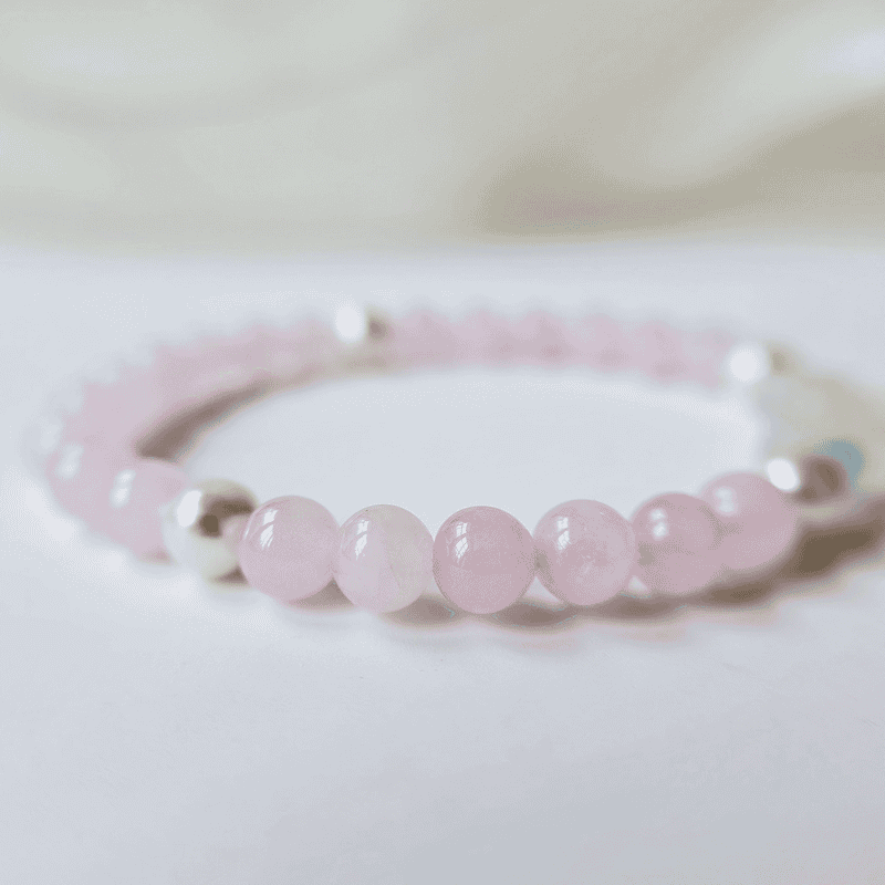 Sweet Pink Gemstone Bracelet – Featuring Rose Beads, Freshwater Pearls, Blue Accents, and a Delicate Bow Pendant for a Feminine and Playful Charm.