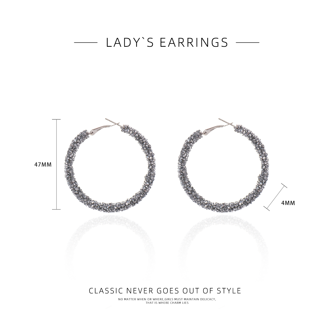 Bold, oversized hoops with sparkling crystals and a vintage-inspired design. Chic, eye-catching, and perfect for making a statement.