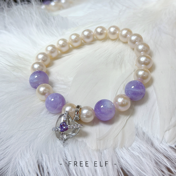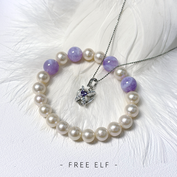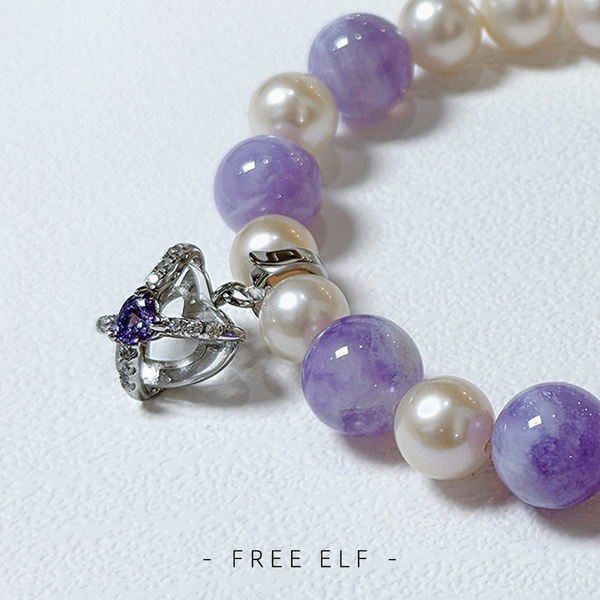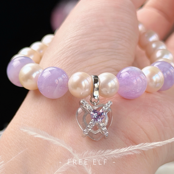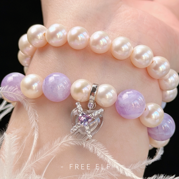 + Free ShippingCrafted with lustrous freshwater pearls and soft lavender amethyst crystals, this bracelet features a delicate heart-shaped charm set with fine micro-pavé technique. Elegant yet romantic, it complements daily workwear, dates, and social gatherings with effortless sophistication. Designed as an original designer piece, each bracelet is carefully handmade with premium materials, offering refined quality and timeless style for modern women.