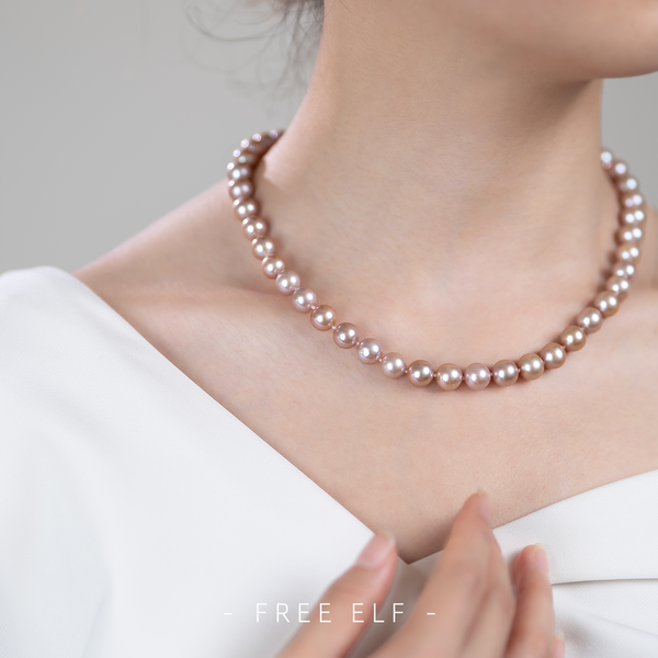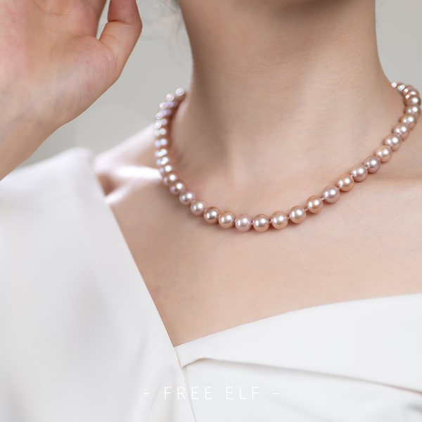 Freshwater Pearl Necklace in Pink Purple Elegant Style