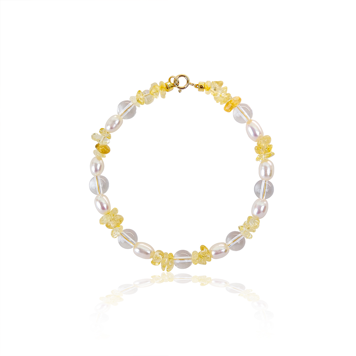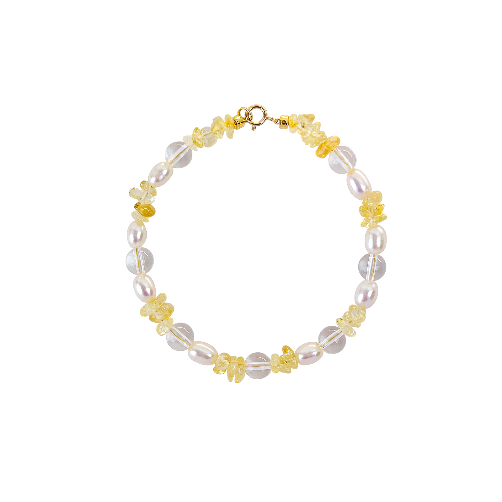 Bright citrine chips paired with lustrous freshwater pearls and clear quartz beads — bringing joy, confidence, and timeless grace. A versatile piece to light up your everyday style or special occasions.