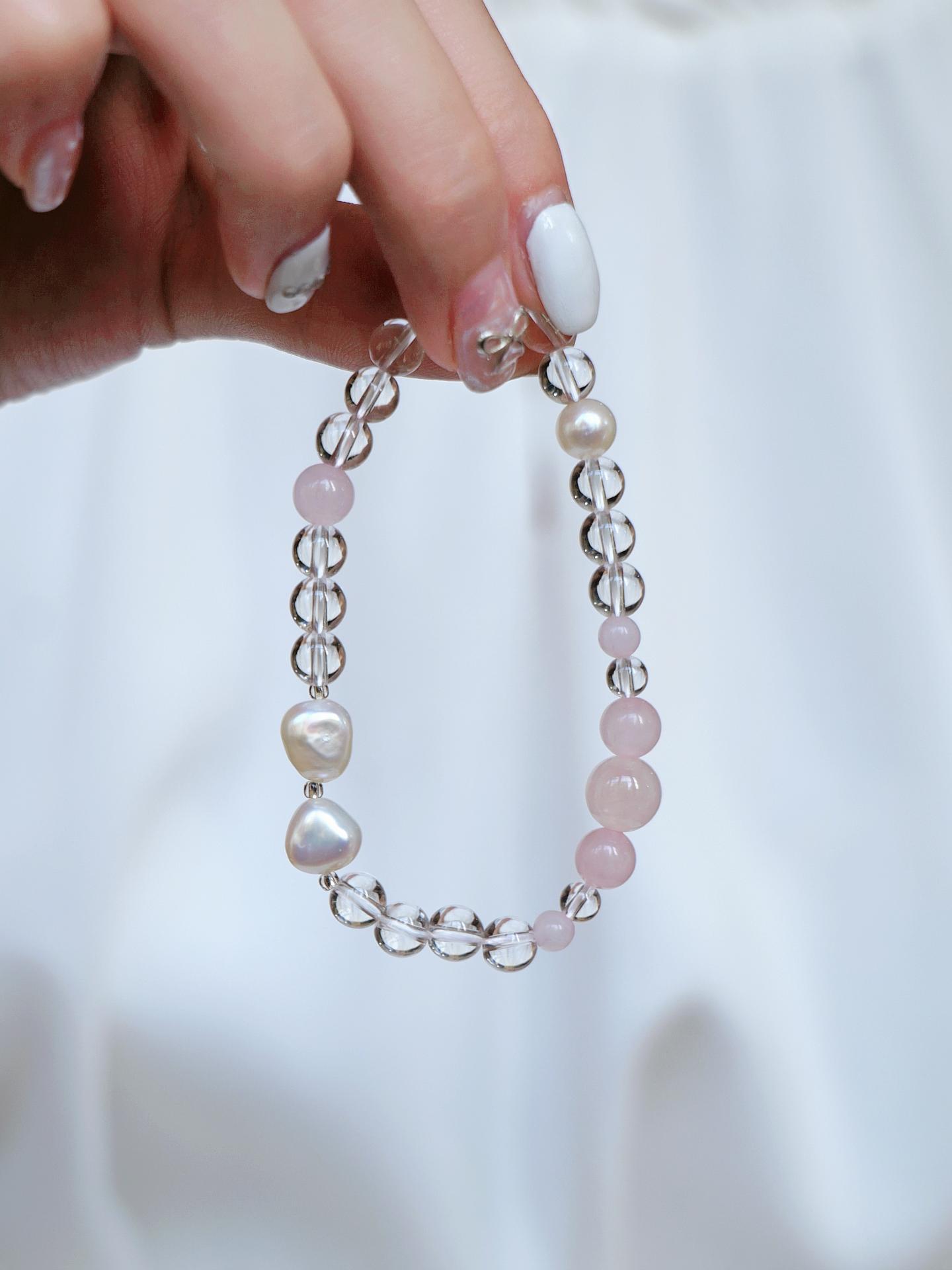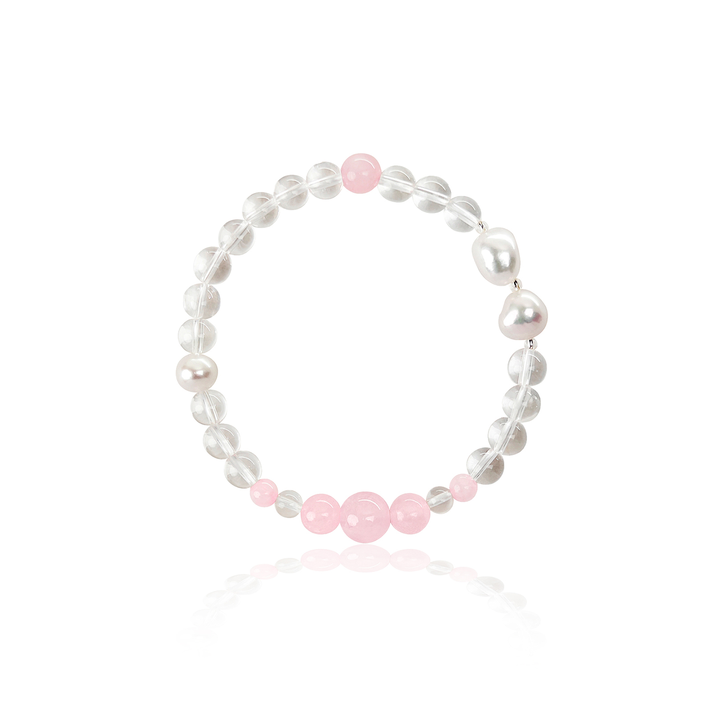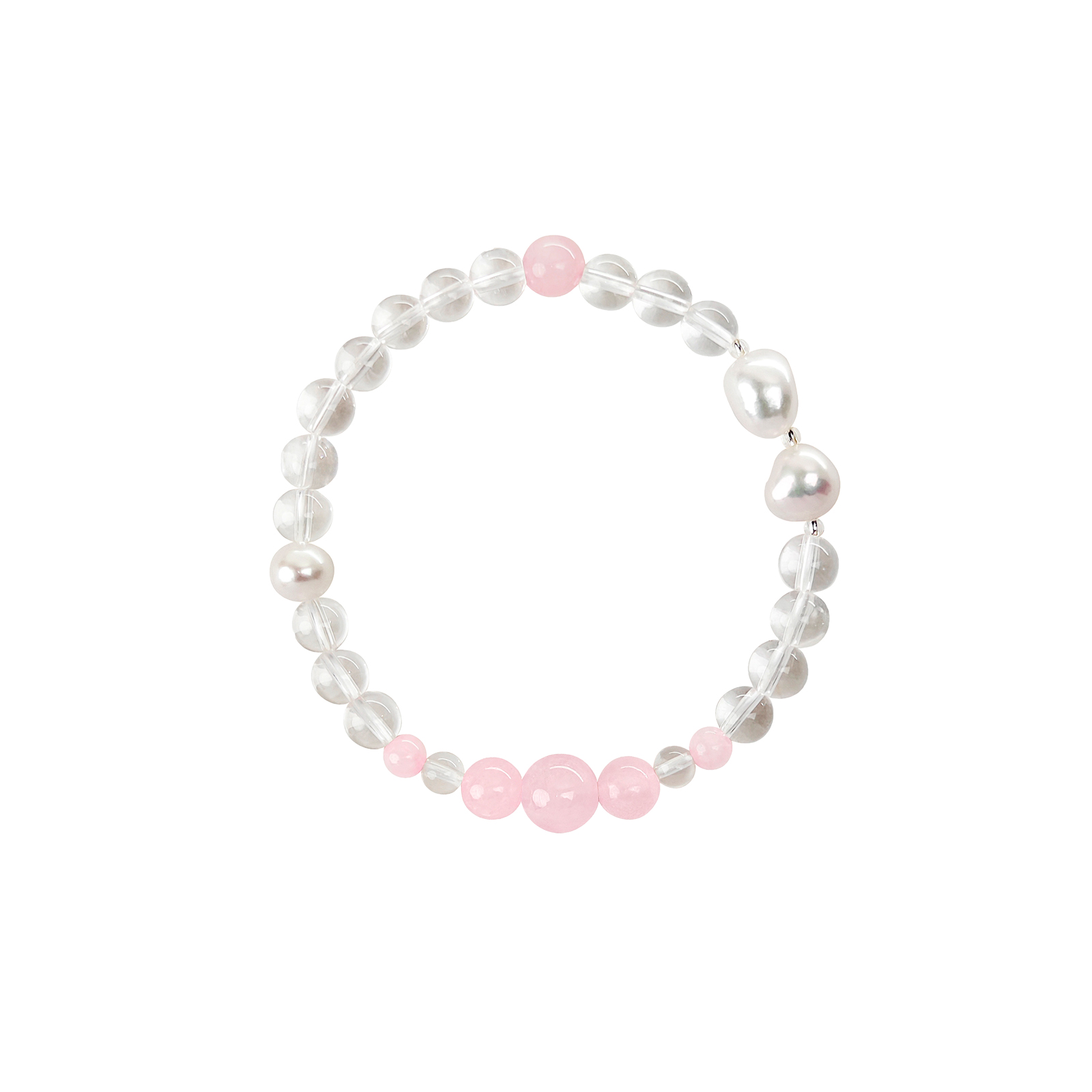 + Free ShippingA delicate harmony of blush-pink rose quartz, luminous clear crystal beads, and lustrous freshwater pearls. This bracelet radiates softness and elegance, perfect for expressing love, warmth, and a touch of romantic charm.