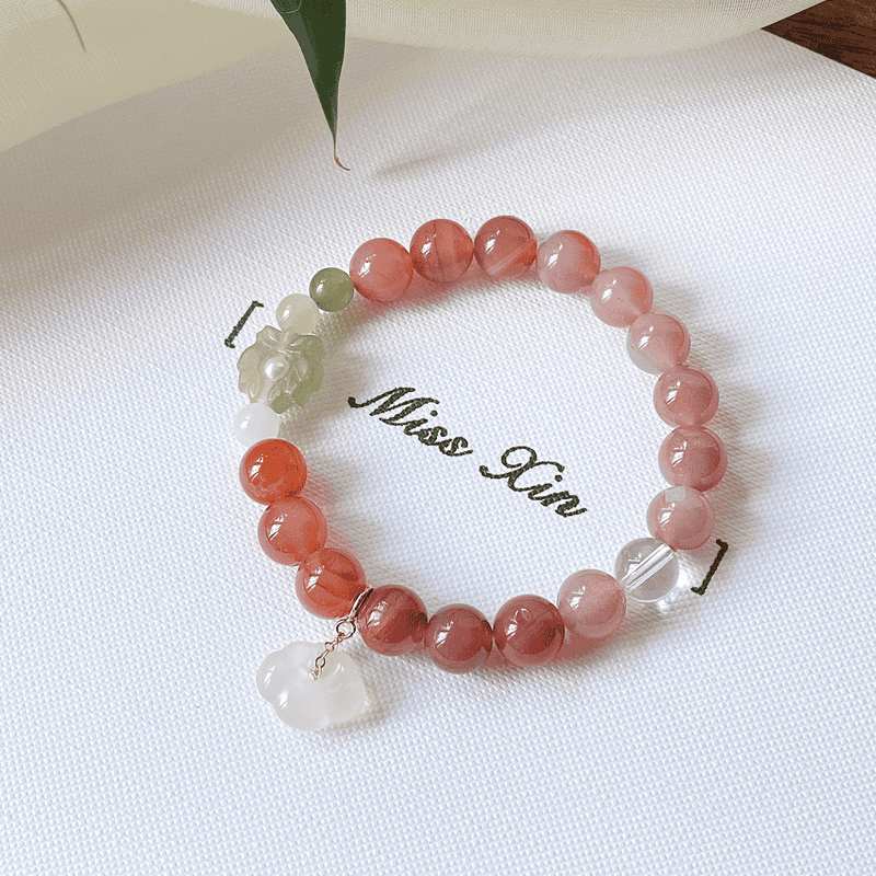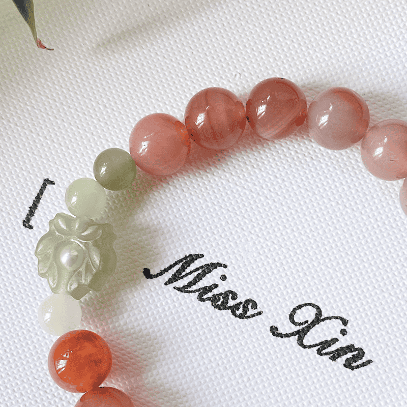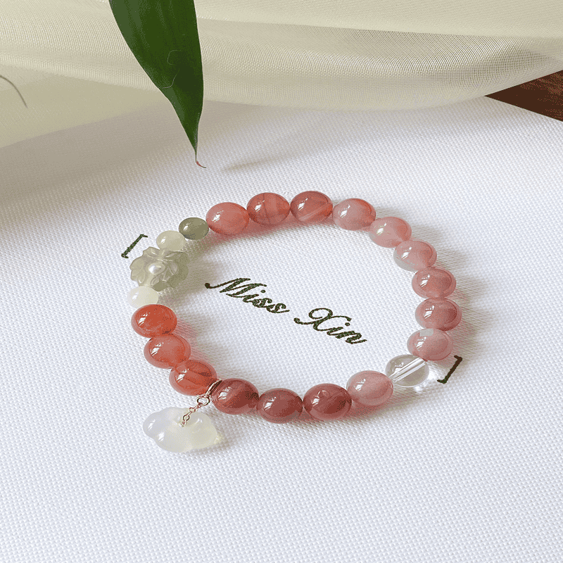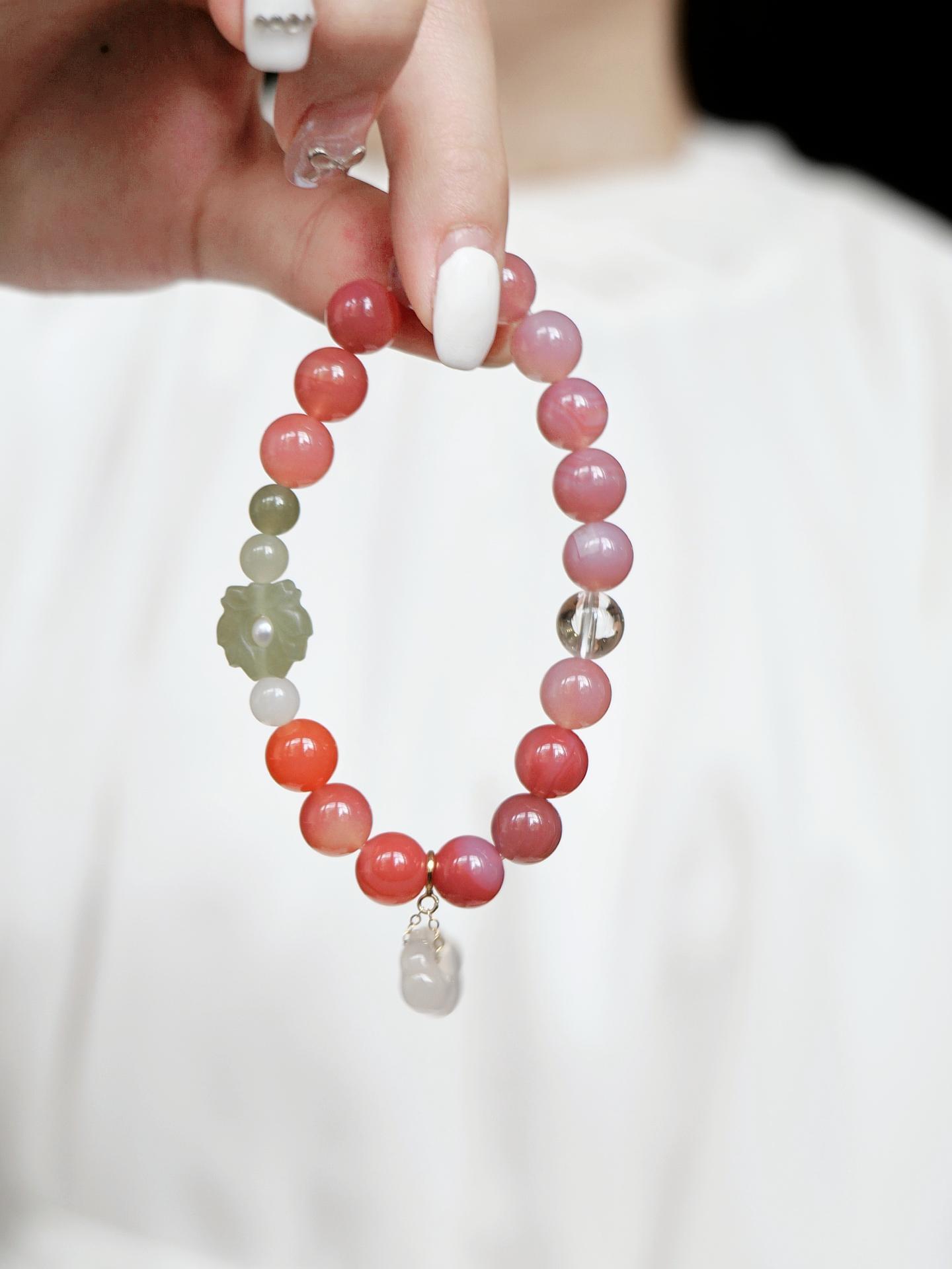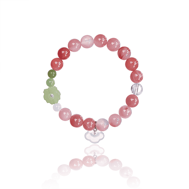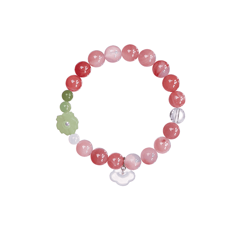 Charming Pink Gemstone Bracelet – Featuring Vibrant Rose and Green Beads with a Cloud-Shaped Pendant, Perfect for Adding a Playful Yet Elegant Touch to Your Style.